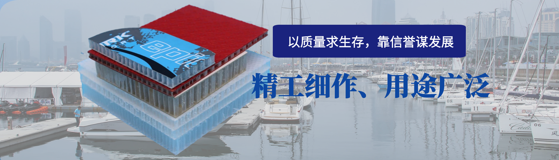青島凱博新型復(fù)合材料有限公司成立于2013年,主要從事聚丙烯(pp)蜂窩芯材、熱塑性蜂窩復(fù)合板材的研發(fā)、生產(chǎn)和銷售。新型塑料蜂窩作為一種新型環(huán)保材料,具有重量輕、強(qiáng)度高,耐水耐腐蝕,絕緣,隔音等特點(diǎn),可以復(fù)合玻璃鋼、木材、亞克力板等,產(chǎn)品應(yīng)用范圍十分廣泛,常見于游艇,貨車廂體、房車,球拍,櫥柜墊板,石材復(fù)合,建筑模板等諸多領(lǐng)域。凱博新材具有較強(qiáng)的研發(fā)改進(jìn)能力,技術(shù)和管理人員有多年的行業(yè)經(jīng)驗,不斷吸取先進(jìn)的管理理念和技術(shù)工藝,并結(jié)合國內(nèi)外行業(yè)應(yīng)用現(xiàn)狀,堅持以應(yīng)用實用為導(dǎo)向,以創(chuàng)新研發(fā)為競爭力,以質(zhì)量管理為生命線,為新材料在各個行業(yè)得到充分合理的應(yīng)... [MORE + ]